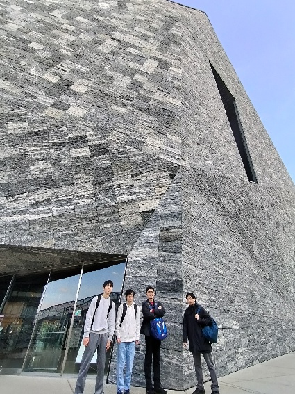中でも巨大な岩のような外見が特徴的な「武蔵野ミュージアム」は、出版社であるKADOKAWAらしく、書籍とアート、博物館が融合したようなユニークな施設となっています。紅白歌合戦でYOASOBIがパフォーマンスを披露したことでも話題になった、広大な空間を本が埋め尽くす「本棚劇場」を始め、膨大な数のマンガやライトノベルを収蔵した「マンガ・ラノベ図書館」など、高尚な文学・芸術からサブカルチャーまでごちゃまぜにしたような、非日常的な空間がどこまでも続きます。午前中の自由行動では、生徒たちはそれぞれの興味の赴くまま、貴重な書籍を手に取ったり、本棚劇場のプロジェクションマッピングに見入ったりしていました。